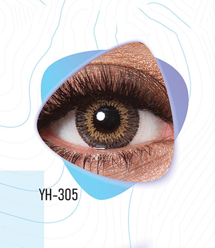 کد YH-305 بین طبیعی و فانتزی تعادل برقرار می‌کند. رنگ طوسی(فیلی) با هاله‌ی عسلی باعث می شود چشم‌ها هم طبیعی باشند و هم متفاوت.